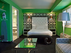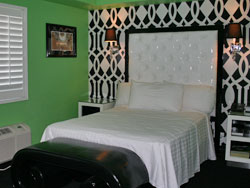 This 250-square-foot non-smoking room comes with a queen-sized bed that has a Sealy pillowtop mattress. It is decorated in a hip modern-retro style and is located in a separate secured building across the street from the El Cortez. Along with custom furniture, it also comes with a 42-inch flat screen TV and an iHome stereo with iPod docking station.